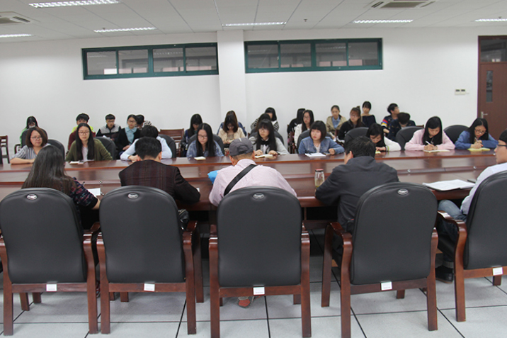 为加强分院学风建设,掌握各班学生学习生活情况,信息分院于5月10日15:00在s1-409会议室顺利召开2015-2016学年第二学期期中教学师生座谈会。出席此次会议的有分院教督造组陈国顺、陈建国、谷仁乔老师,辅导员王江珏、胡春晓老师,教学办王洋老师和2013级、2014级、2015级各班学习委员。