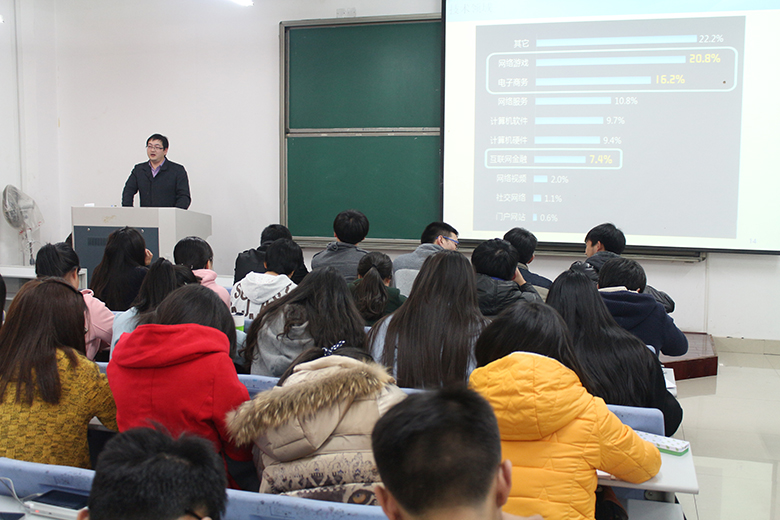 为使同学们更完整地了解当前的就业背景,同时认清自身优势,挖掘自身潜能,从而进一步规划合理、有效的职业生涯,信息分院针对14年级的计算机和信管专业,于2015年12月4日下午开展了2015-2016学年大学生职业生涯规划讲座。讲座由辅导员齐璐老师主持,杭州东忠集团负责人朱定峰进行主讲。