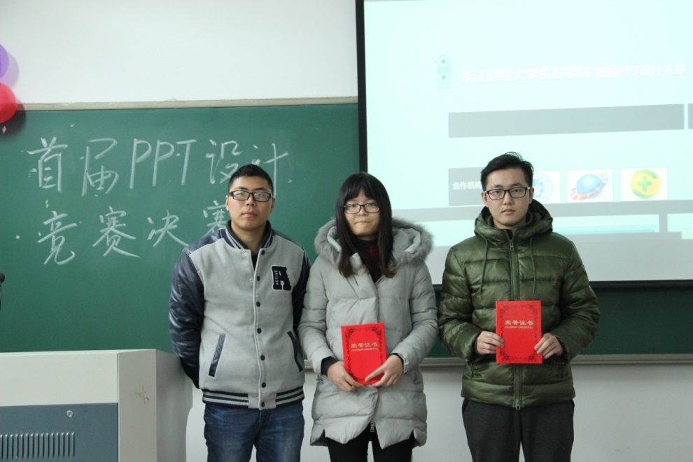 经过两个小时紧张激烈的PPT展示与点评提问,评委老师根据作品的展示内容、现场表现、艺术特色以及技术含量四个方面为每组参赛队伍进行现场评分。最终,12级工商2班林郁杰和曾艳婷的作品《我的东方》、14级计算机专业王眯娜、吕梦楚和叶恬孜的作品《梦想与东方》获得一等奖。此外,本次竞赛评选出二等奖5组,三等奖8组,并在未进入决赛的参赛队伍中评选出优胜奖若干。希望通过这次比赛,让同学们意识到PPT已成为我们学习、生活中不可或缺的演示工具,并进一步帮助同学们了解PPT的技术技巧和设计精髓,将PPT应用到实践中。