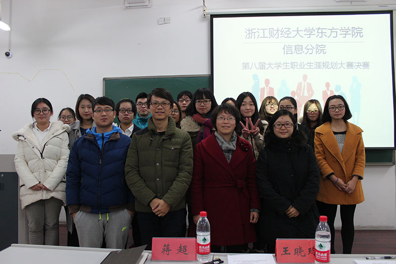2015年12月17日晚6:30,浙江财经大学东方学院信息分院第八届大学生职业生涯规划大赛决赛如期举行。信息分院党总支副书记王晓玲老师、学院招生就业办蒋超老师、信息分院辅导员齐璐、王江珏老师受邀参加并担任了本届比赛的评委。