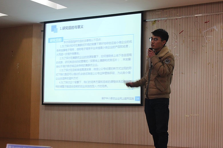 同时在本次开幕式上,创业训练项目代表“蚁巢”、国创项目代表“海宁家纺网上超市”、创业实践项目“绿果森林”、创新项目代表“TimeLog”四个学生创新创业项目分别上台进行成果展示,从项目的意义、实施过程、创新之处、项目成效以及未来的展望等方面向在场师生作了介绍。接下来,各个学生社团的负责人也向在场师生介绍了本次创新创业科技嘉年华活动中社团将举办的一些主题活动,呼吁所有热心创新创业的同学加入其中。