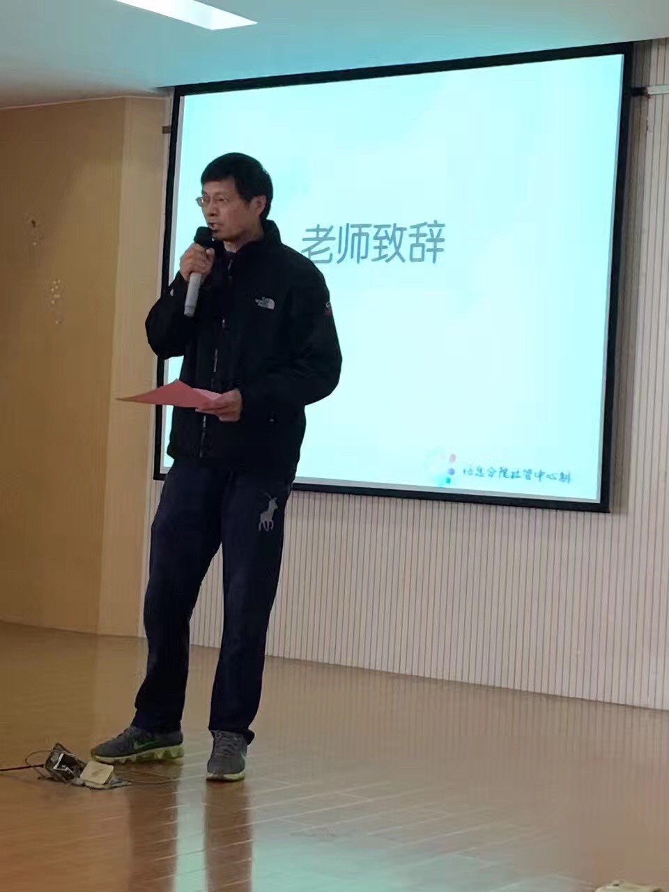 分院创业导师代表周家地在开幕式上发言。他希望同学们积极投入接下来举办的各项创新创业主题活动中,同时周老师为在场同学在创新创新创业选题、充分利用专业优势等方面提出了合理化建议。
