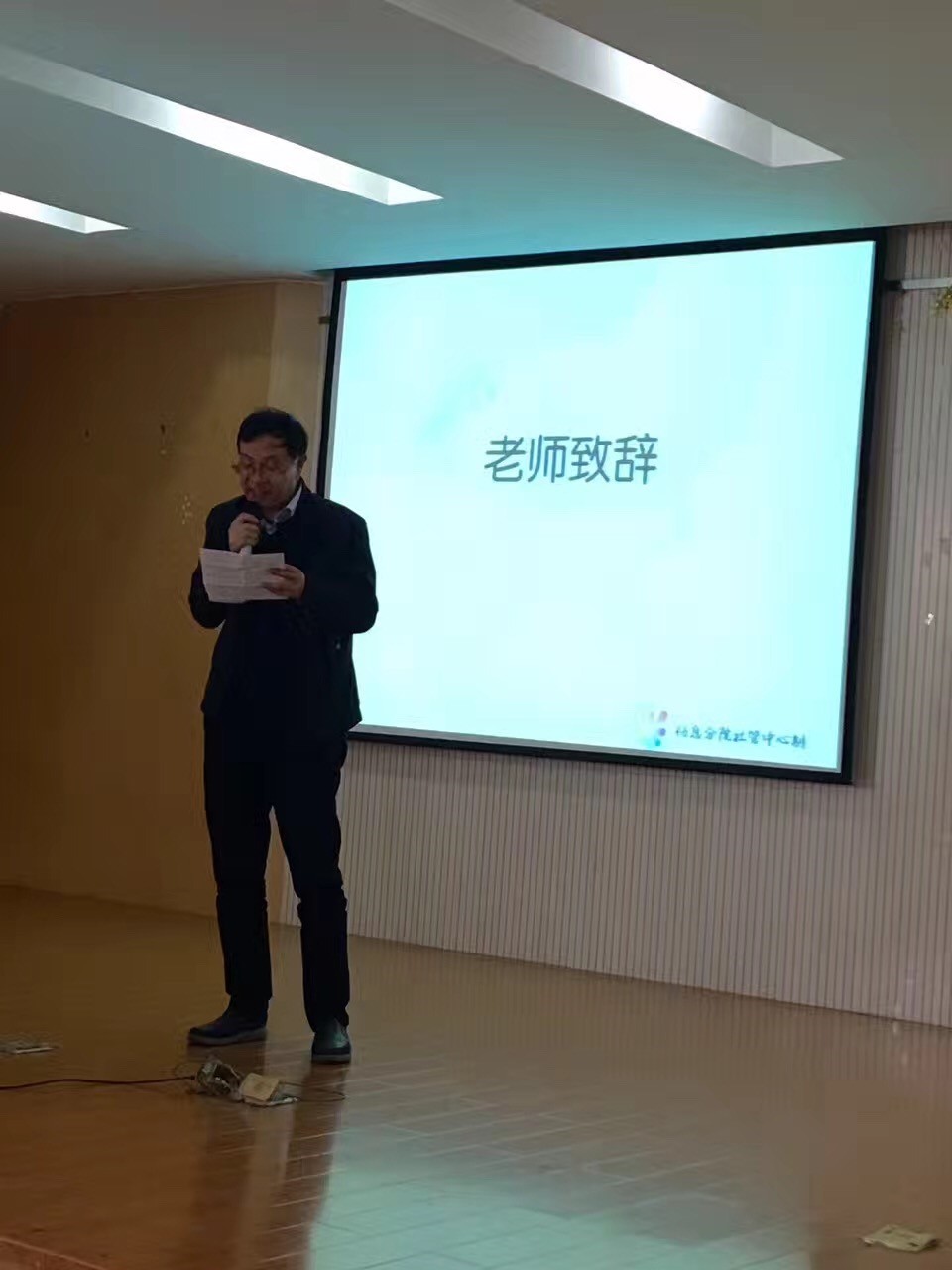 随后,信息分院院长姚建荣上台致辞。首先他对学院领导以及职能部门领导莅临指导表示感谢。姚建荣院长强调,一直以来,我们分院的学生立足专业积极开展科研创新,推动分院创新创业工作的展开,这其中涌现出很多优秀学生团队。姚院长对学生创新创业提出殷切的期望,他希望同学们借用本次开幕式的东风,用所学的知识与技能投身到创新创业宏图中,为自己、为国家创造美好的明天。