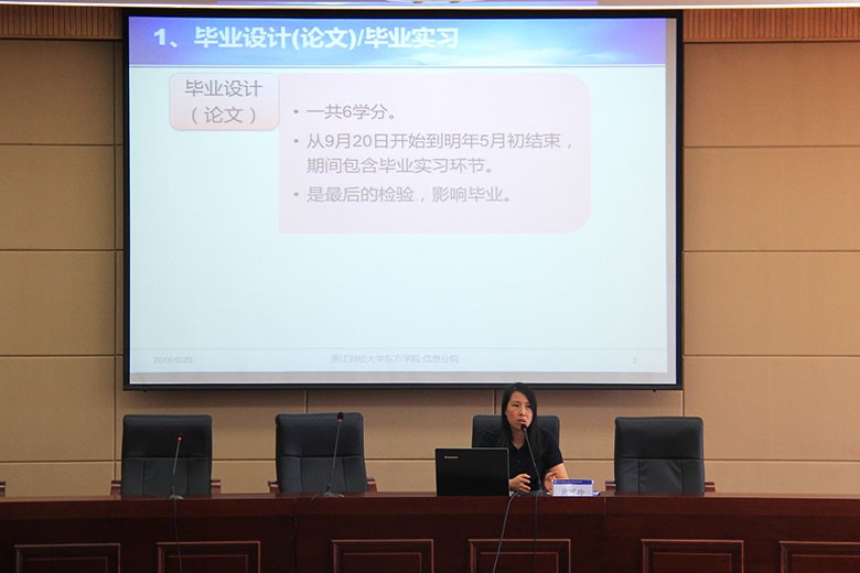 会议围绕如何顺利毕业和更好就业展开。会议开始后,王晓玲老师和辅导员赵苑老师通过16届就业情况,向同学们分析了就业的迫切性,并鼓励同学们大胆走出出去,“迎接属于你们的未来”。紧接着,应可珍老师在综合实训、创业实训、毕业论文等方面给毕业生建议及规划,她告诫毕业生,千万莫要把工作作为唯一,因为还需要毕业。