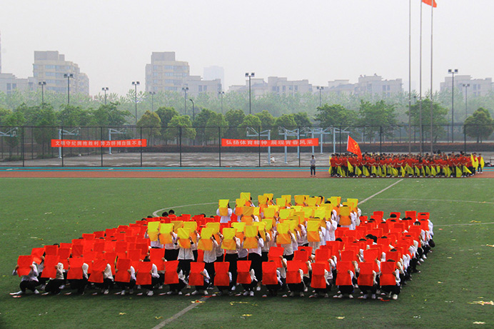 21日上午8时,运动会正式拉开帷幕。随着老师高昂的开场介绍结束,256名信息学子迎着太阳的光辉从四个方向整齐、快速地涌入操场。围绕着“中国红,信息梦”的主题,表演队高亢的口号和整齐的动作,在队形和双色花扇的变换中将信息文化展现得淋漓尽致。“日出东方”、“辽阔版图”、“如火党徽”、“花开东方”、“人潮涌动”、“Wi-Fi”等图形字样,对中华文明的敬畏,对信息时代的希望,都一一表现在这涌动的变化中。中国红是我们的血液和脉搏,信息梦是我们的旗帜和标杆。我们坚定信念,沉稳脚下步伐,去迎接献花和掌声。我们万众一心,去开启信息大门。信息学子用行动赢得了评委和观众的阵阵掌声和欢呼声。想要一睹信息学子的创意吗?小编对下面的照片百看不厌。