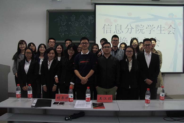 2016年10月14日晚8点,浙江财经大学东方学院信息分院学生会换届会议在3号教学楼209教室顺利举行。信息分院学生工作办公室主任王江珏、学生会指导老师胡春晓、学院及兄弟分院学生会代表参加了本次会议。