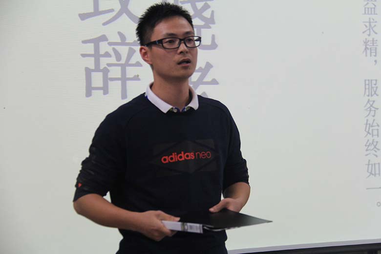 会议第三项,14级储备干部竞选演讲。十位竞选者依次上台演讲,5分钟演讲内容包括自我情况、竞选职位、竞选理由、工作设想等,一次展示,一次竞选,竞选者各个发挥出色,慷慨激昂。
