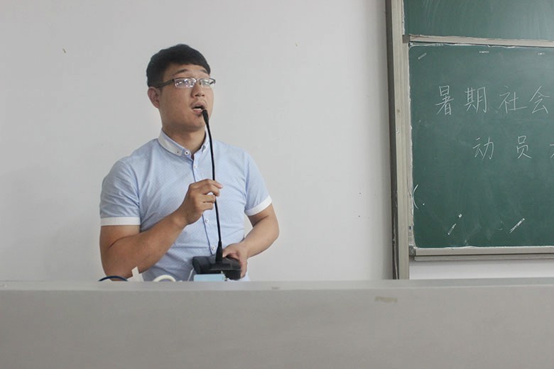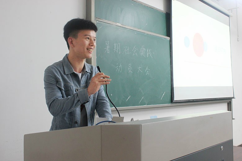 其次信息分院学生会指导老师王江珏老师也和我们分享了他以前做暑期社会实践调查的有趣经历。他提到社会实践能够让我们收获到很多并且对于大学生也很重要。社会实践调查活动的开展是一个团队的事,希望每个参与其中的同学都能精诚合作,认真对待,每个人都投入其中,尽己所能把其中的每一个环节做到最好。