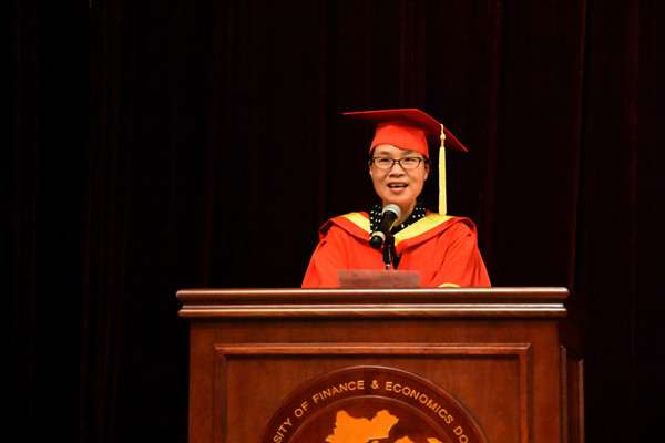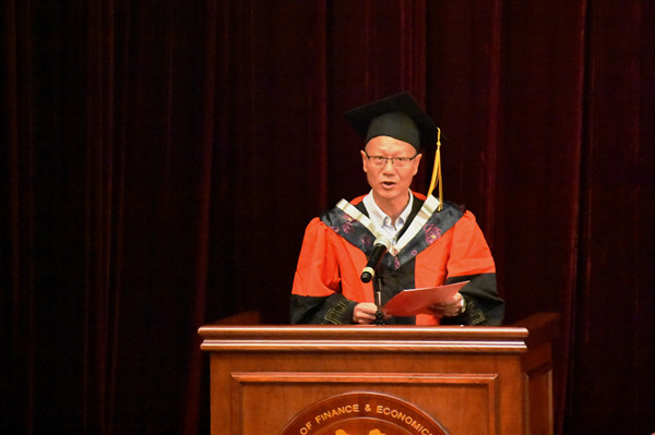 之后教师代表钱璐老师、毕业生代表金燕楠同学、在校生代表张琴同学相继上台发言,表达了对全体毕业生诚挚的祝福,希望每一位同学能够在未来享受更加精彩的人生。钱璐老师谈到,衷心地希望每一位毕业生无论是走向工作第一线,还是选择继续深造,都能坚持不断地向书本和实践学习,进一步充实和丰富自己,让学习成为你的一种生活习惯。毕业生代表金燕楠同学则回顾了在浙财走过的四年青春。在向母校深情告白之时,她也说出了所有毕业生的心里话:愿学生时代里踏实、纯粹的“少年感’永不褪色;愿“进德修业,与时偕行”的校训与我们一路相随;愿梦想常青,担当常在,你我无愧于这个时代。
