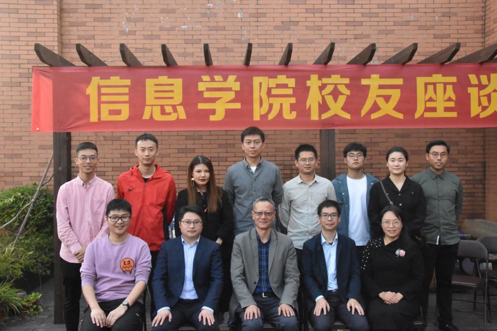 微暖的阳光照进宽敞明道,随着人潮的热情不断升温,在信息学院二号实验楼的5楼露台,熟悉的环境,温馨的布置,和谐的氛围下,校友们参加了信息学院校友座谈会。出席此次座谈会的有信息学院院长成定平老师、信息学院党总支书记费松天老师、东方学院后勤基建部部长(原信息学院党总支副书记)王晓玲老师等,大家聚坐一堂,一番熟络后展开了热烈的交流探讨。