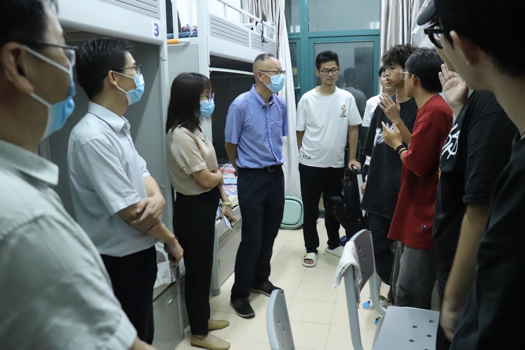 为进一步落实开学事项,关怀学生身心健康,2022年9月3日下午六点,东方学院党委副书记林香娥老师、信息院长成定平老师、科研副院长彭武珍老师、党总支书记费松天老师、22级新生辅导员王淼峰老师以及19级辅导员李秋晴老师和21级辅导员豆芹兰老师包括各专业的大、小班助集体走访宿舍。
